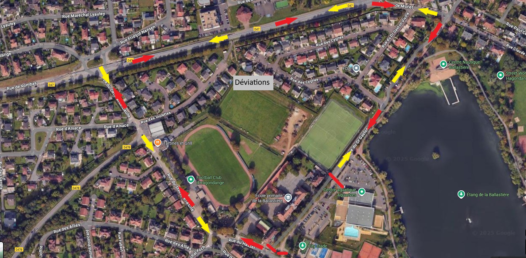 Une déviation sera mise en place : via rue du Hassel – rue du stade de la cité – rue Général de Gaulle – RD 47 – Rue Monet -Allée des colverts – Rue du Dr Gaston Viville et inverse. Merci de votre compréhension