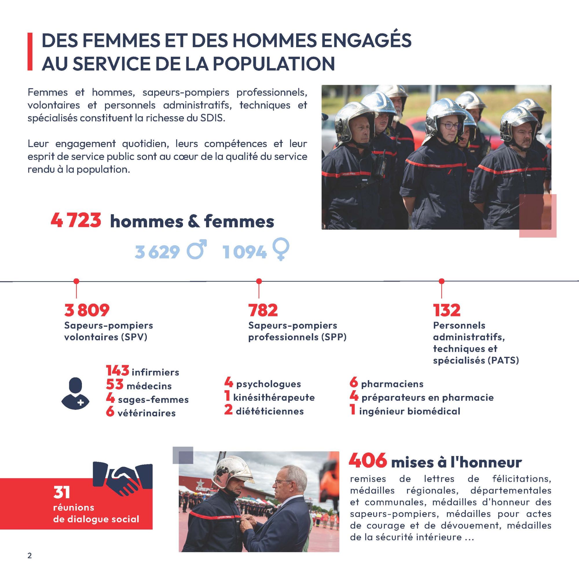 Femmes et hommes, sapeurs-pompiers professionnels, volontaires et personnels administratifs, techniques et spécialisés constituent la richesse du SDIS. Leur engagement quotidien, leurs compétences et leur esprit de service public sont au cœur de la qualité du service rendu à la population.