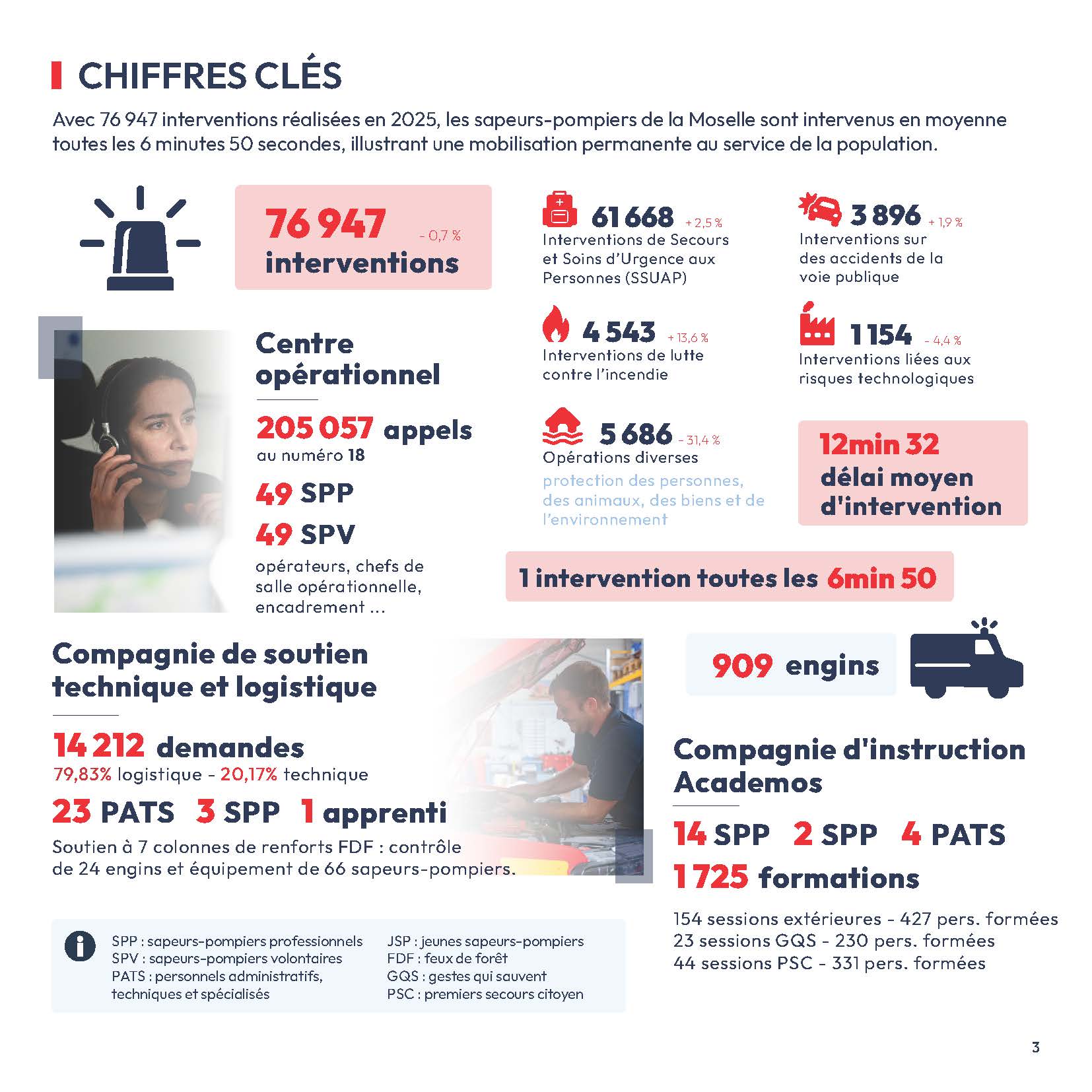 Avec 76 947 interventions réalisées en 2025, les sapeurs-pompiers de la Moselle sont intervenus en moyenne